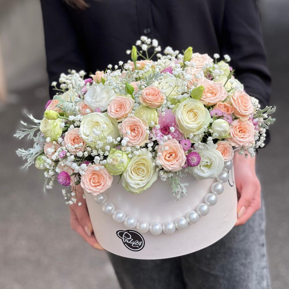 Гвоздики, Кустовые розы, Пионовидные розы, Розы
