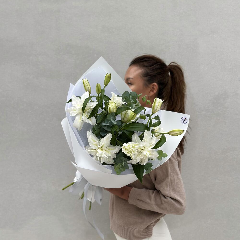 Эвкалипт – 2 шт. лилия пионовидная – 3 шт.