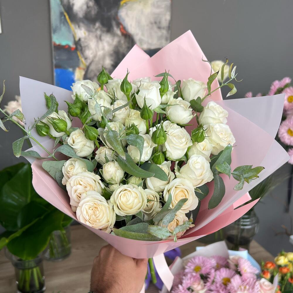Кустовые розы, Лизиантусы, Розы, Сухоцвет