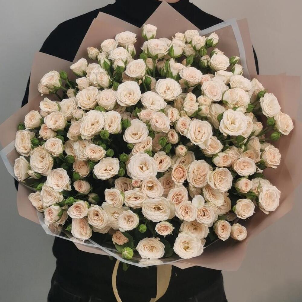 Букет из пионов, пионовидных и кустовых роз и эустом