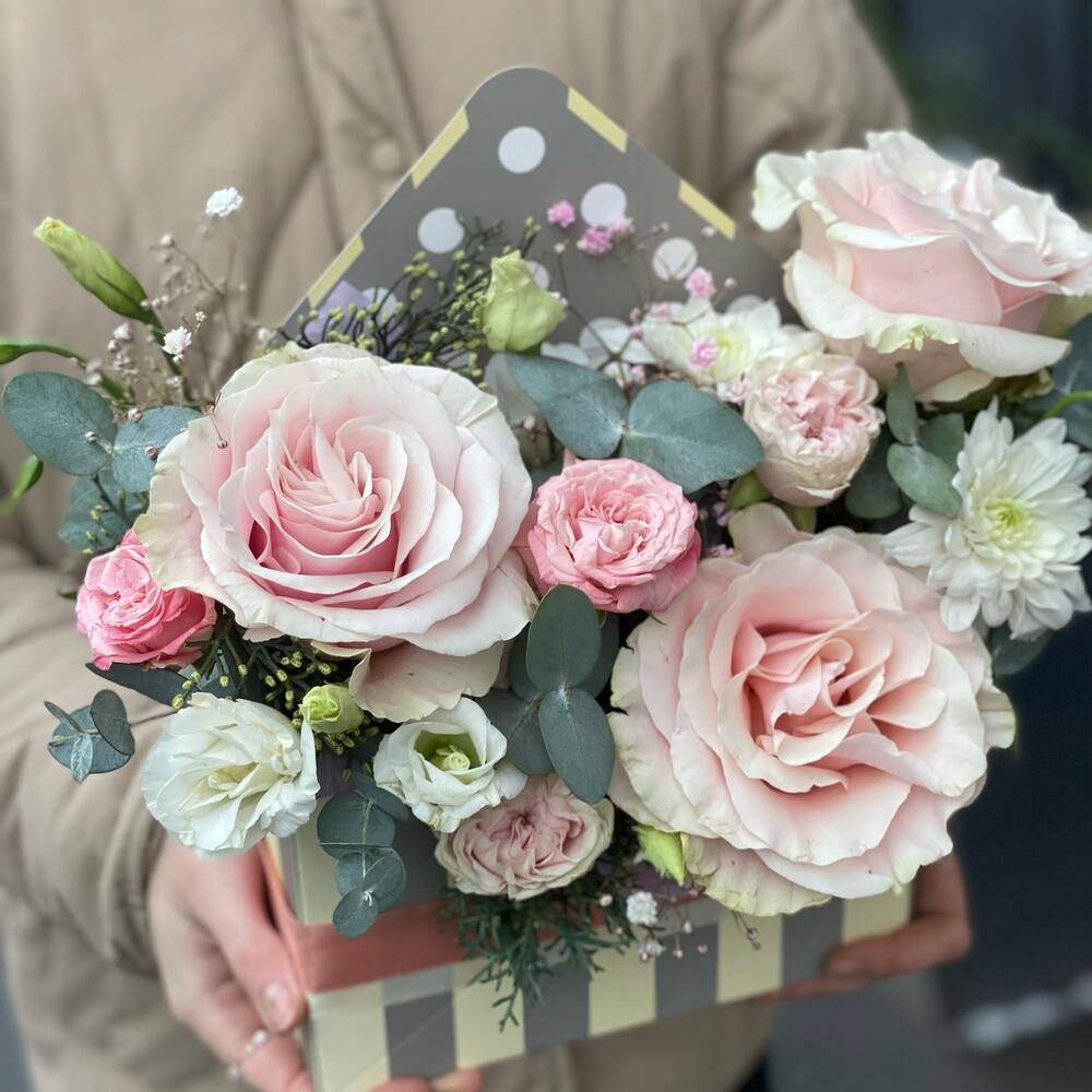 Цветы в коробке «Цветочное послание»
